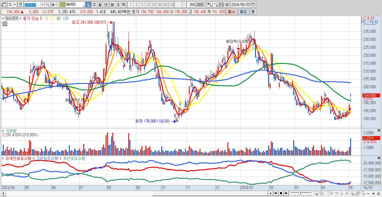 2.NAVER 194,600원 ▲ 3.07% (KOSPI, 035420)