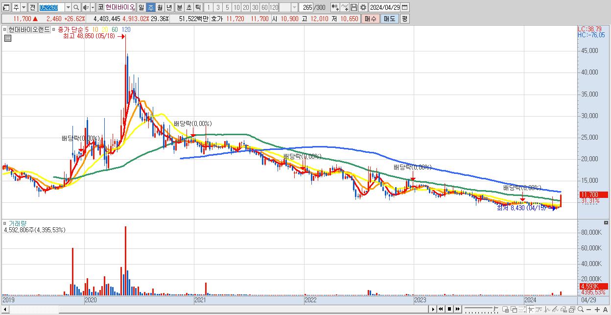 - 현대바이오랜드 (11,700원 ▲ 31.31% , 시총: 1,755억, 거래량: 4,592,806, 거래대금:533억)