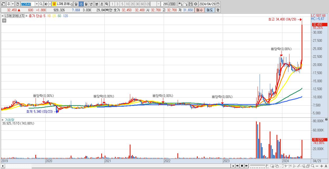 - LS에코에너지 (32,450원 ▲ 55.26% , 시총: 9,938억, 거래량: 39,925,157, 거래대금:12,086억)