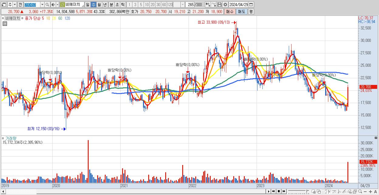 - 비에이치 (20,700원 ▲ 24.03% , 시총: 7,134억, 거래량: 15,772,334, 거래대금:3,174억)