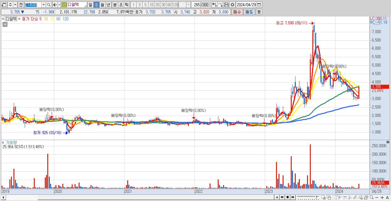 - 디알텍 (3,705원 ▲ 23.09% , 시총: 2,732억, 거래량: 25,964,923, 거래대금:917억)