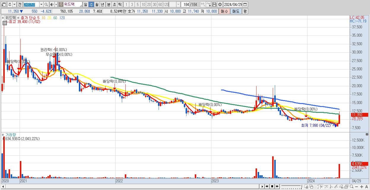 - 위드텍 (11,350원 ▲ 28.39% , 시총: 1,156억, 거래량: 4,634,938, 거래대금:534억)