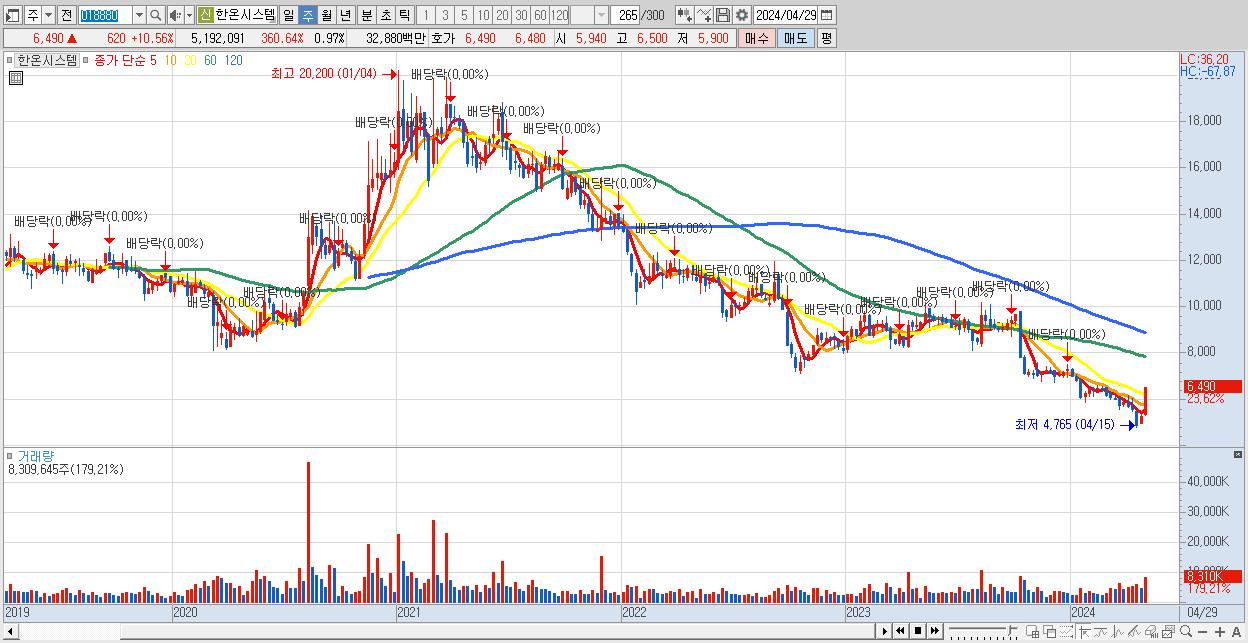 - 한온시스템 (6,490원 ▲ 23.62% , 시총: 34,644억, 거래량: 8,309,645, 거래대금:505억)
