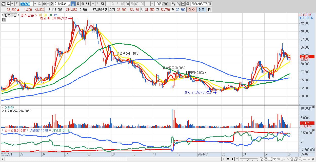 29.한화오션 32,200원 ▲ 3.87% (KOSPI, 042660)