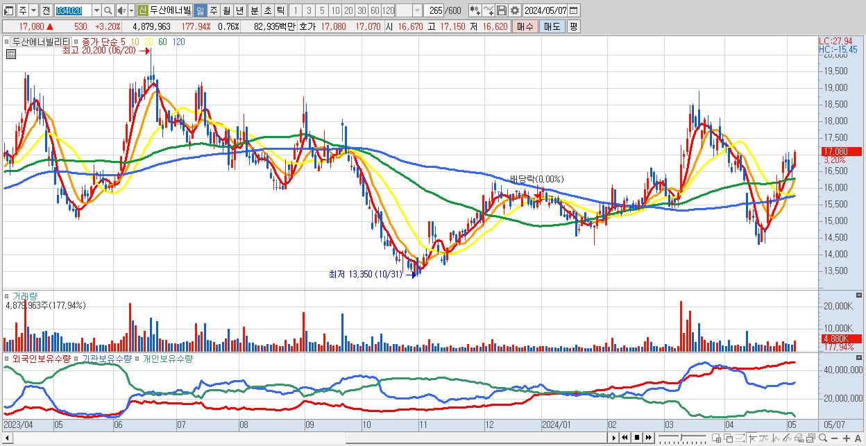 - 두산에너빌리티 (17,080원 ▲ 3.2% , 시총: 109,408억, 외국인 순매수 거래금:311억)