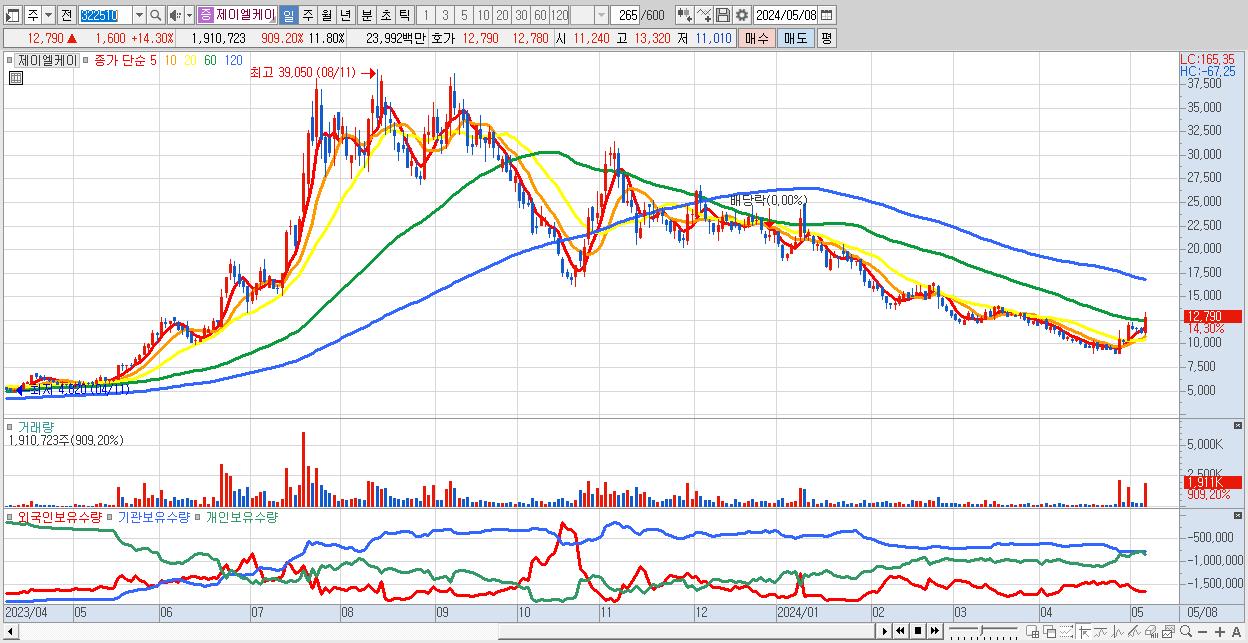 - 제이엘케이 (12,790원 ▲ 14.3% , 시총: 2,071억, 거래량: 1,910,723, 거래대금:240억)