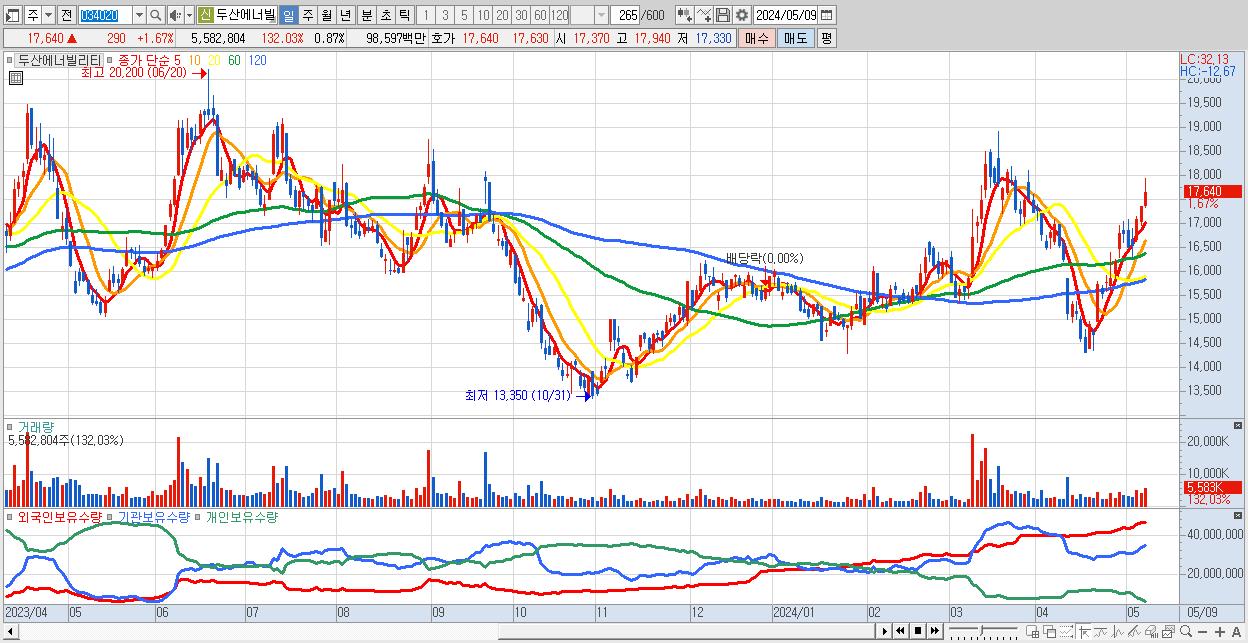 - 두산에너빌리티 (17,640원 ▲ 1.67% , 시총: 112,995억, 외국인 순매수 거래금:102억)
