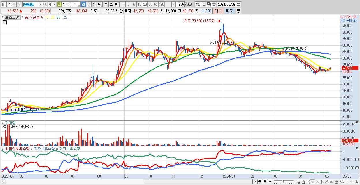 - 포스코DX (42,550원 ▲ 0.59% , 시총: 64,691억, 외국인 순매수 거래금:77억)