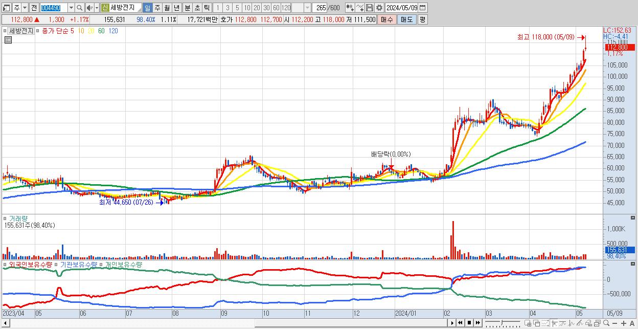 세방전지 112,800원 ▲ 1.17% (KOSPI, 004490)