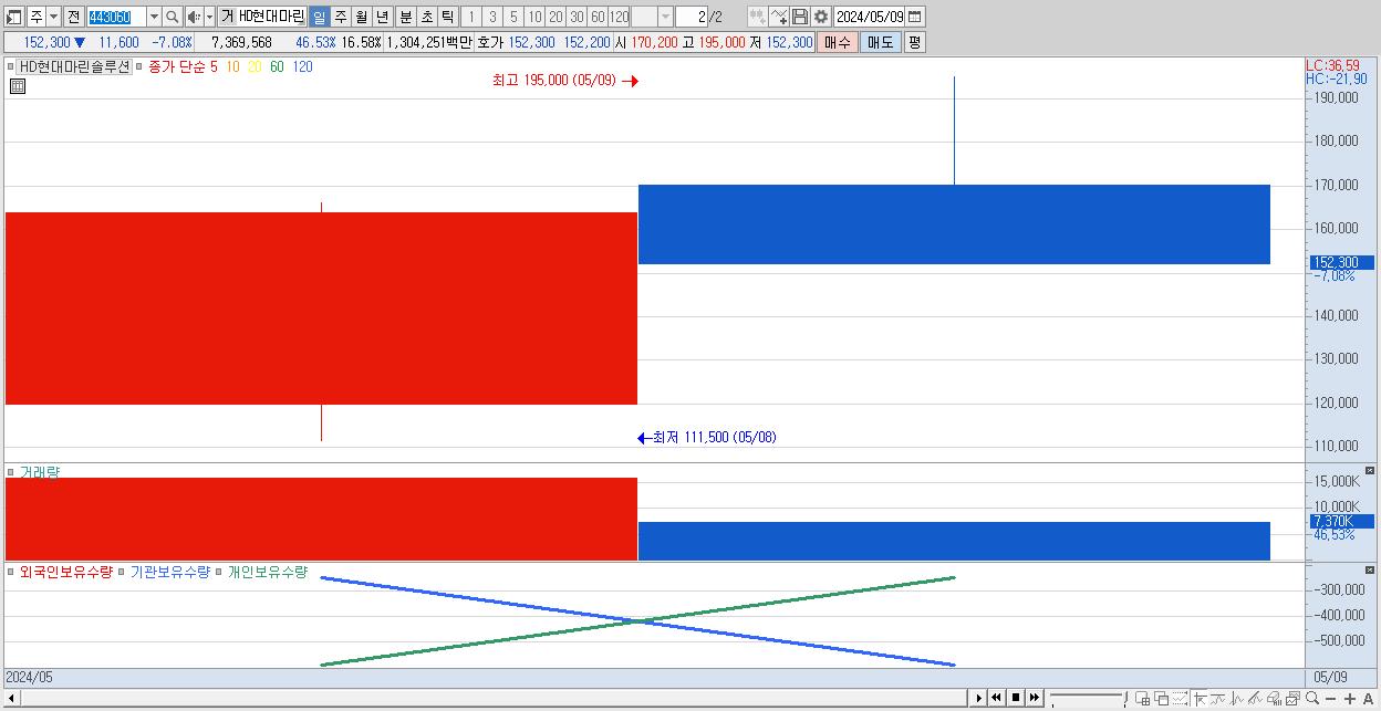 2.HD현대마린솔루션 152,300원 ▼ -7.08% (KOSPI, 443060)
