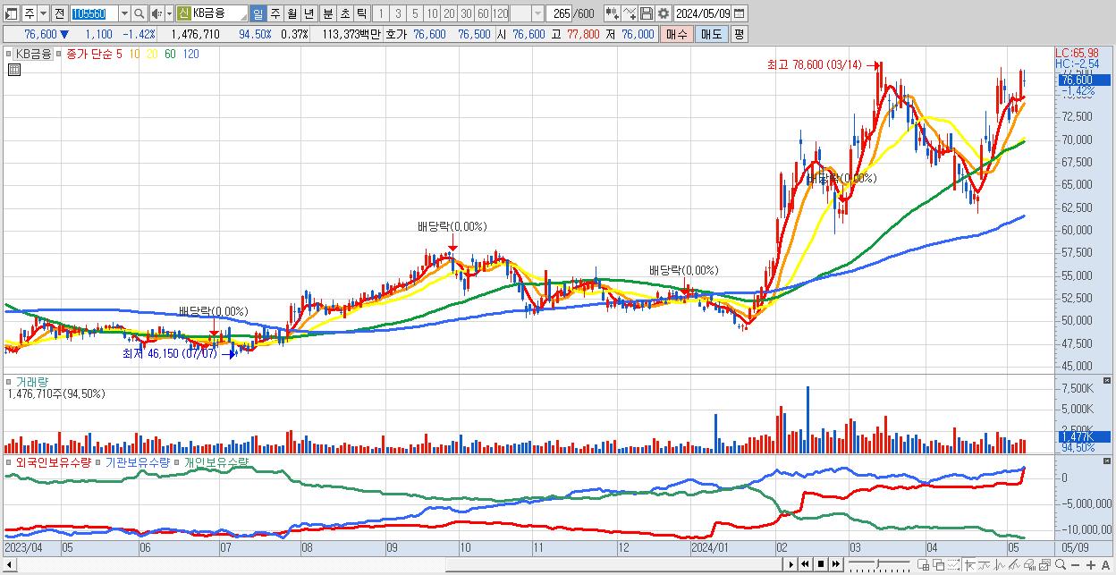 30.KB금융 76,600원 ▼ -1.42% (KOSPI, 105560)