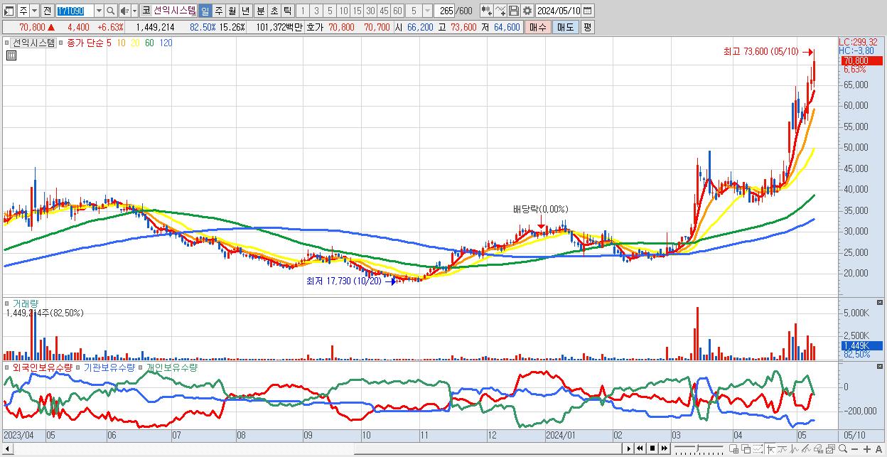 - 선익시스템 (70,800원 ▲ 6.63% , 시총: 6,722억, 외국인 순매수 거래금:61억)