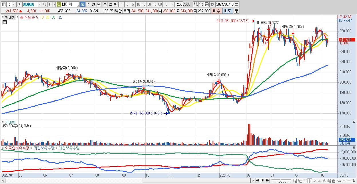 - 현대차 (241,500원 ▲ 1.9% , 시총: 505,740억, 외국인 순매수 거래금:97억)