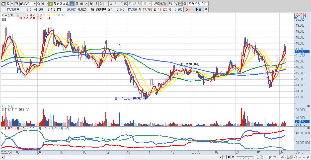 - 두산에너빌리티 (17,330원 ▼ -1.76% , 시총: 111,009억, 외국인 순매수 거래금:53억)