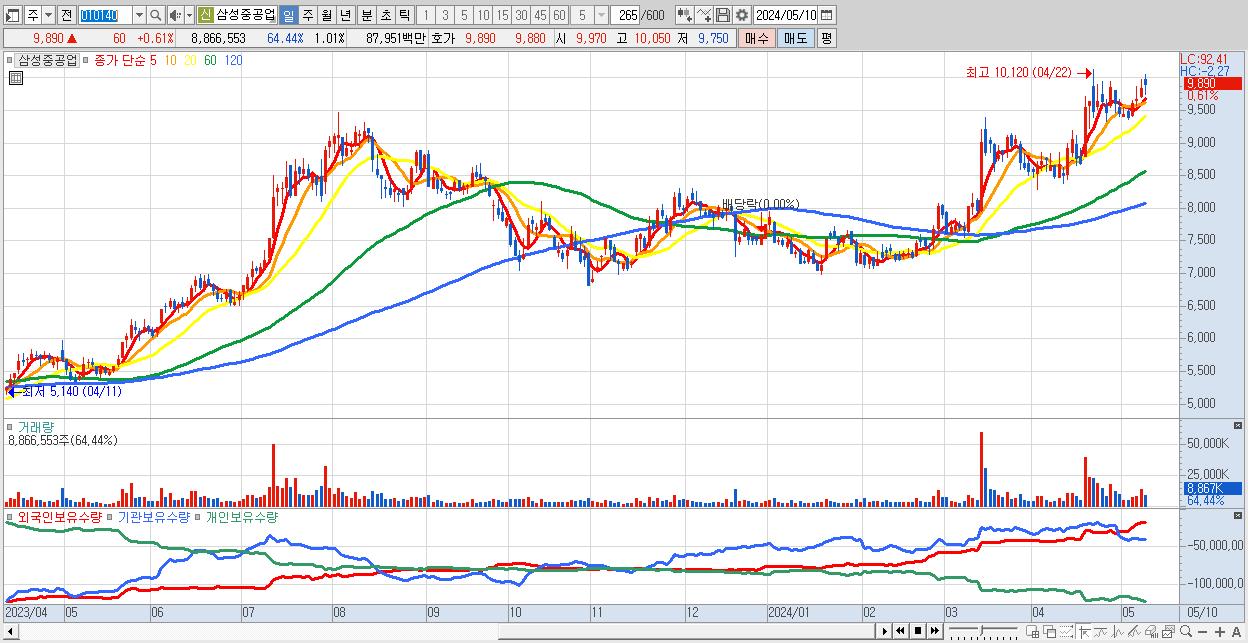 - 삼성중공업 (9,890원 ▲ 0.61% , 시총: 87,032억, 외국인 순매수 거래금:99억)