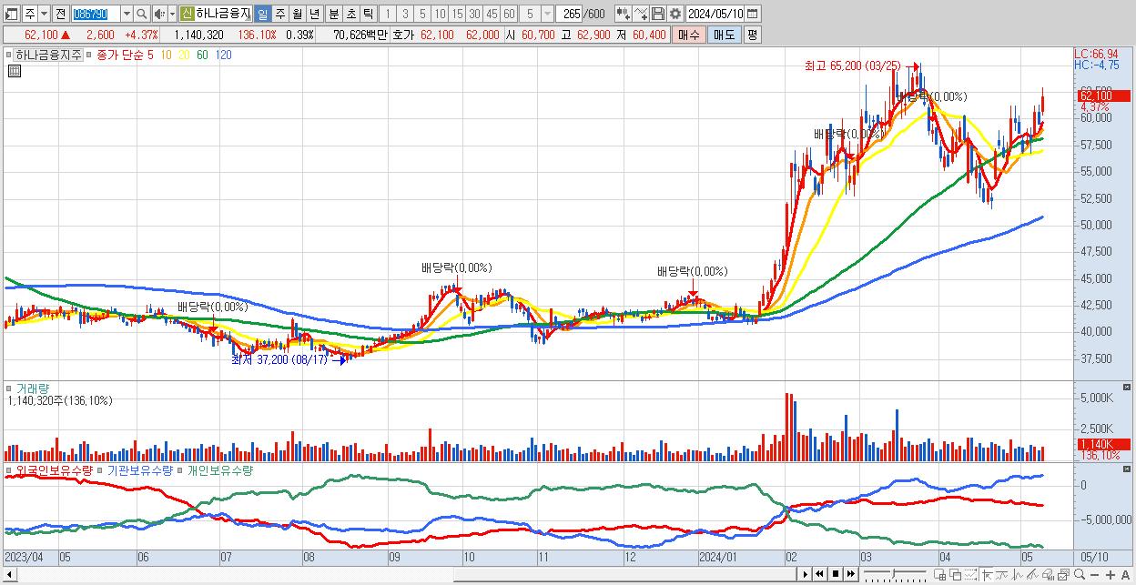 - 하나금융지주 (62,100원 ▲ 4.37% , 시총: 181,553억, 외국인 순매수 거래금:99억)