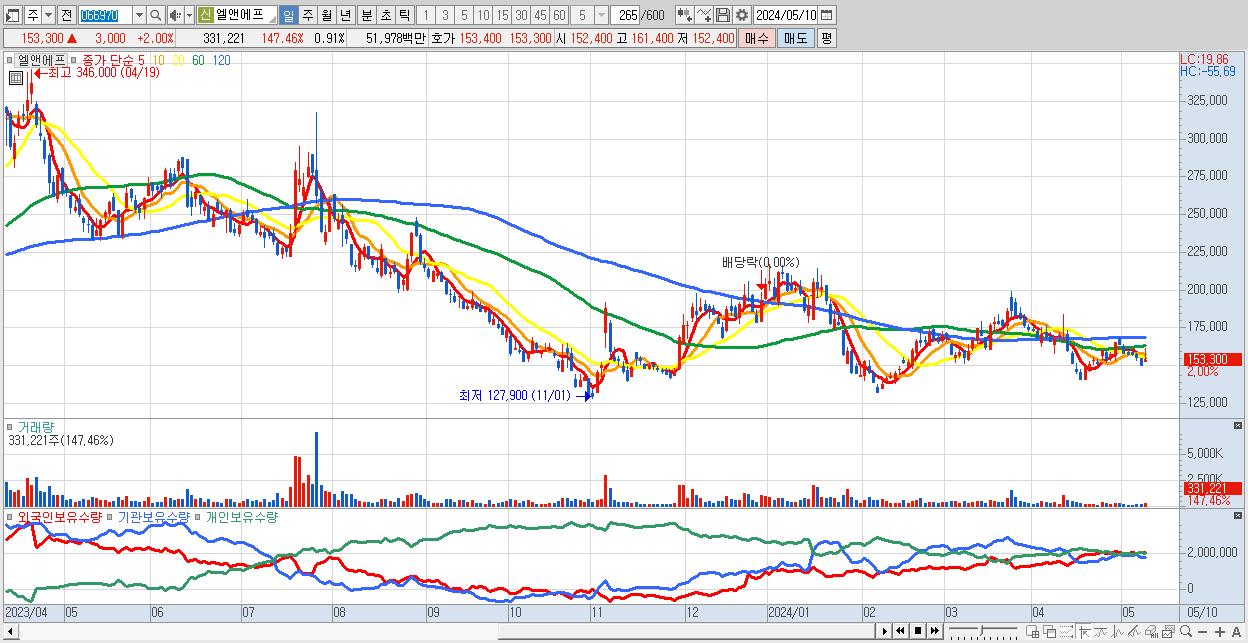 - 엘앤에프 (153,300원 ▲ 2% , 시총: 55,640억, 외국인 순매수 거래금:106억)