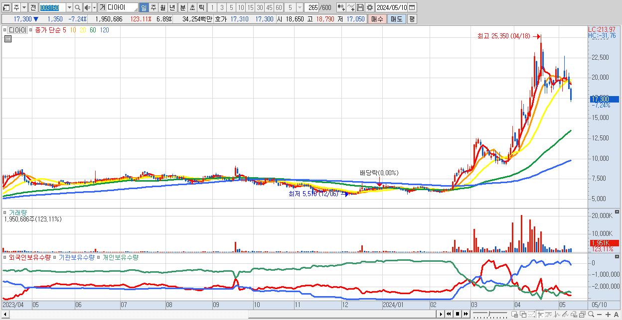 - 디아이 (17,300원 ▼ -7.24% , 시총: 4,896억, 외국인 순매수 거래금:66억)