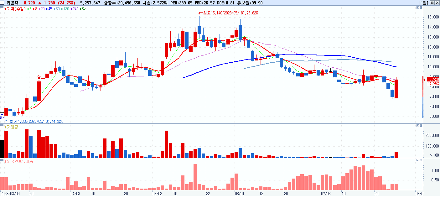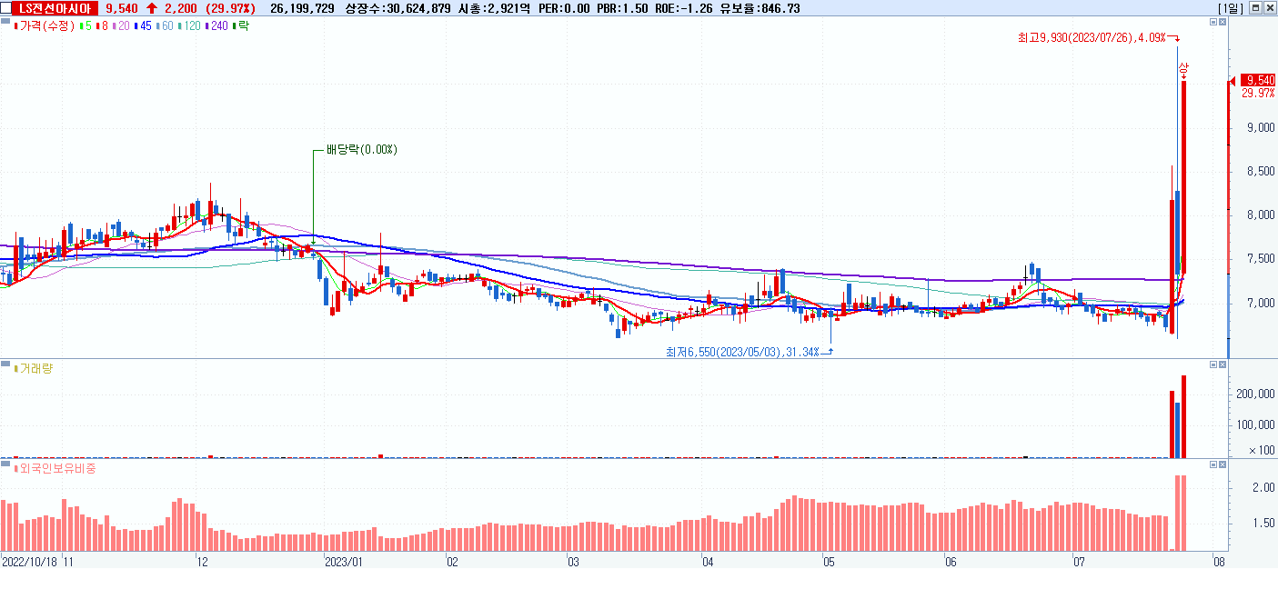 시총: 2,922억 거래량: 26,201,741 거래대금:2,327억