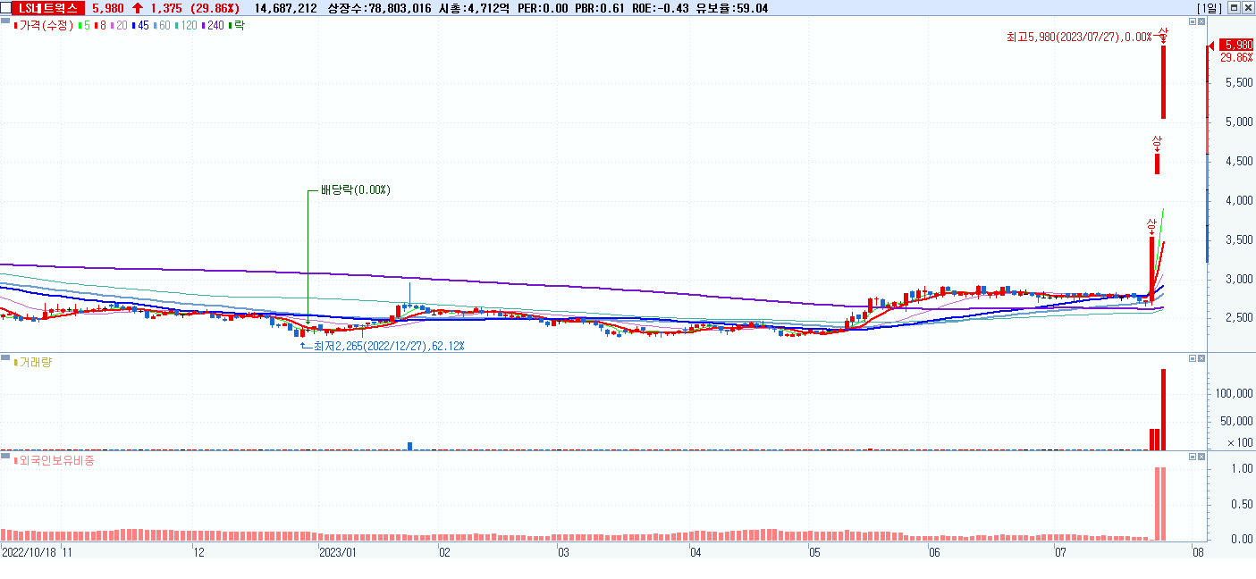 시총: 4,712억 거래량: 14,687,308 거래대금:824억