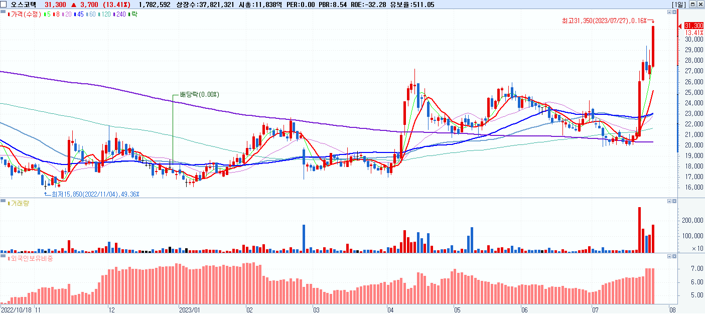 시총: 1,309억 거래량: 5,354,057 거래대금:366억
