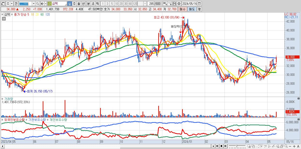 - 심텍 (34,000원 ▲ 7.09% , 시총: 10,830억, 외국인 순매수 거래금:82억)
