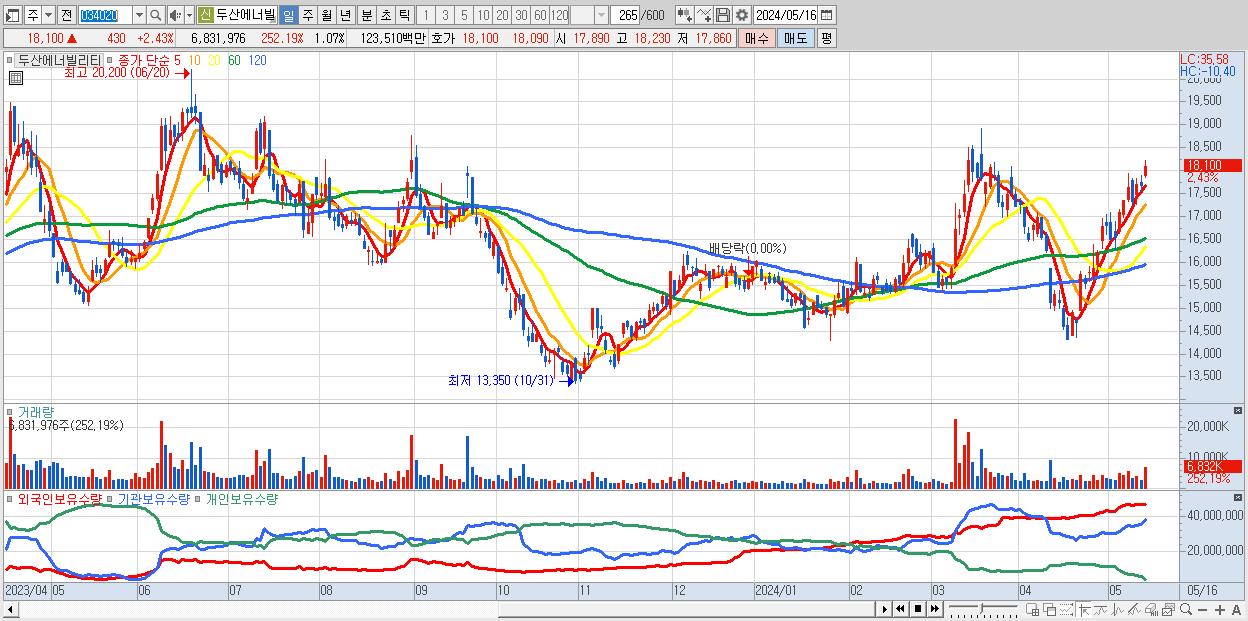 - 두산에너빌리티 (18,100원 ▲ 2.43% , 시총: 115,942억, 외국인 순매수 거래금:235억)