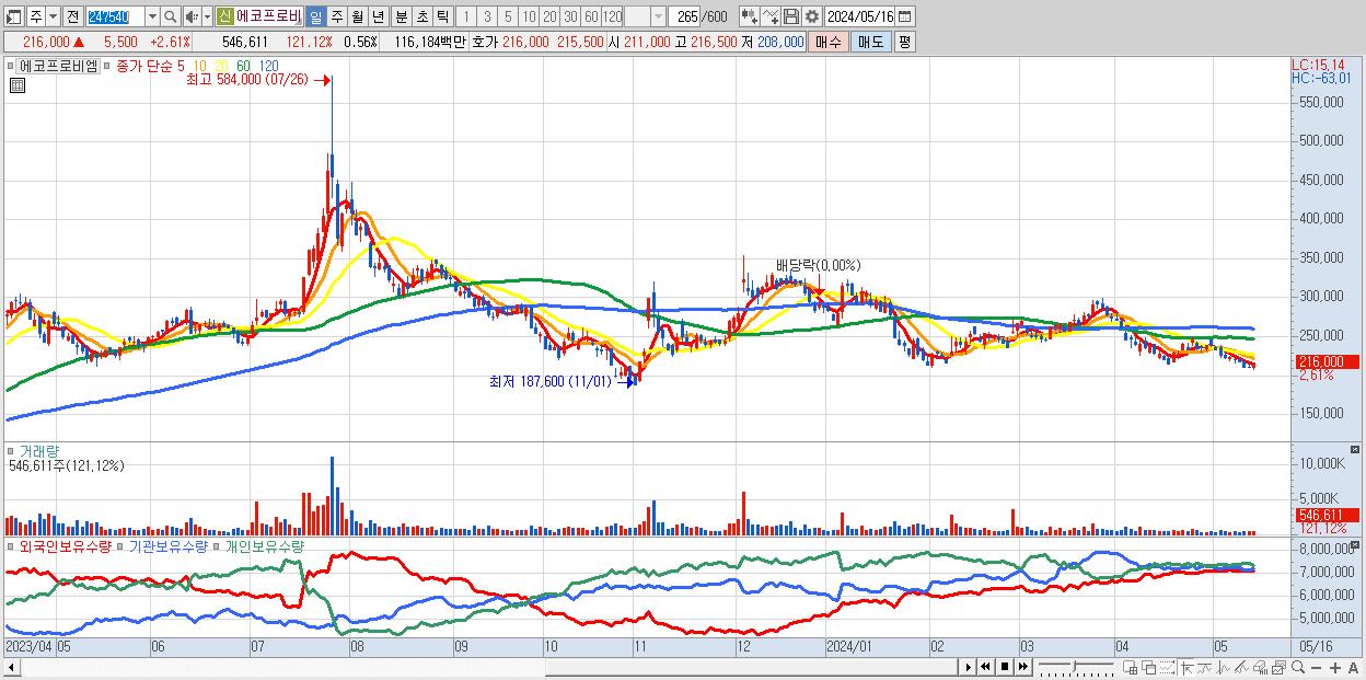 - 에코프로비엠 (216,000원 ▲ 2.61% , 시총: 211,251억, 외국인 순매수 거래금:212억)