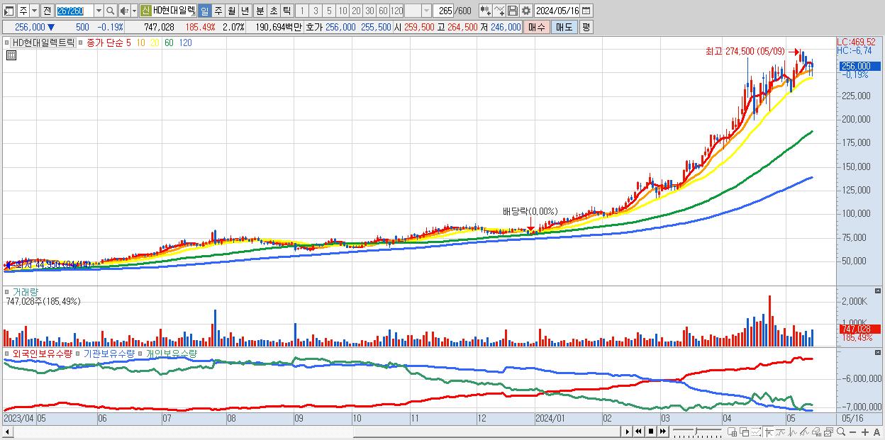 - HD현대일렉트릭 (256,000원 ▼ -0.19% , 시총: 92,281억, 외국인 순매수 거래금:108억)