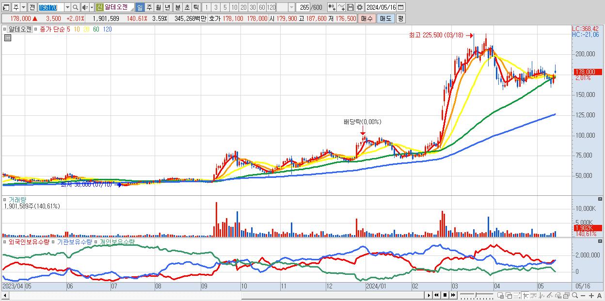 - 알테오젠 (178,000원 ▲ 2.01% , 시총: 94,361억, 외국인 순매수 거래금:138억)