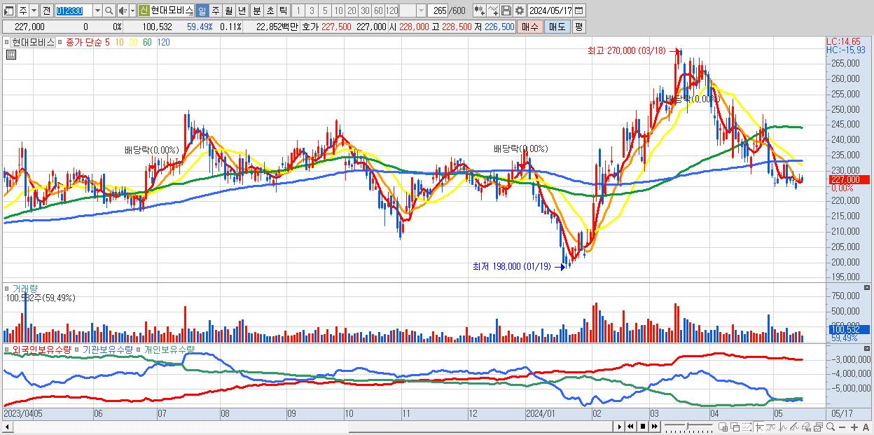 - 현대모비스 (227,000원 0% , 시총: 212,597억, 외국인 순매수 거래금:37억)
