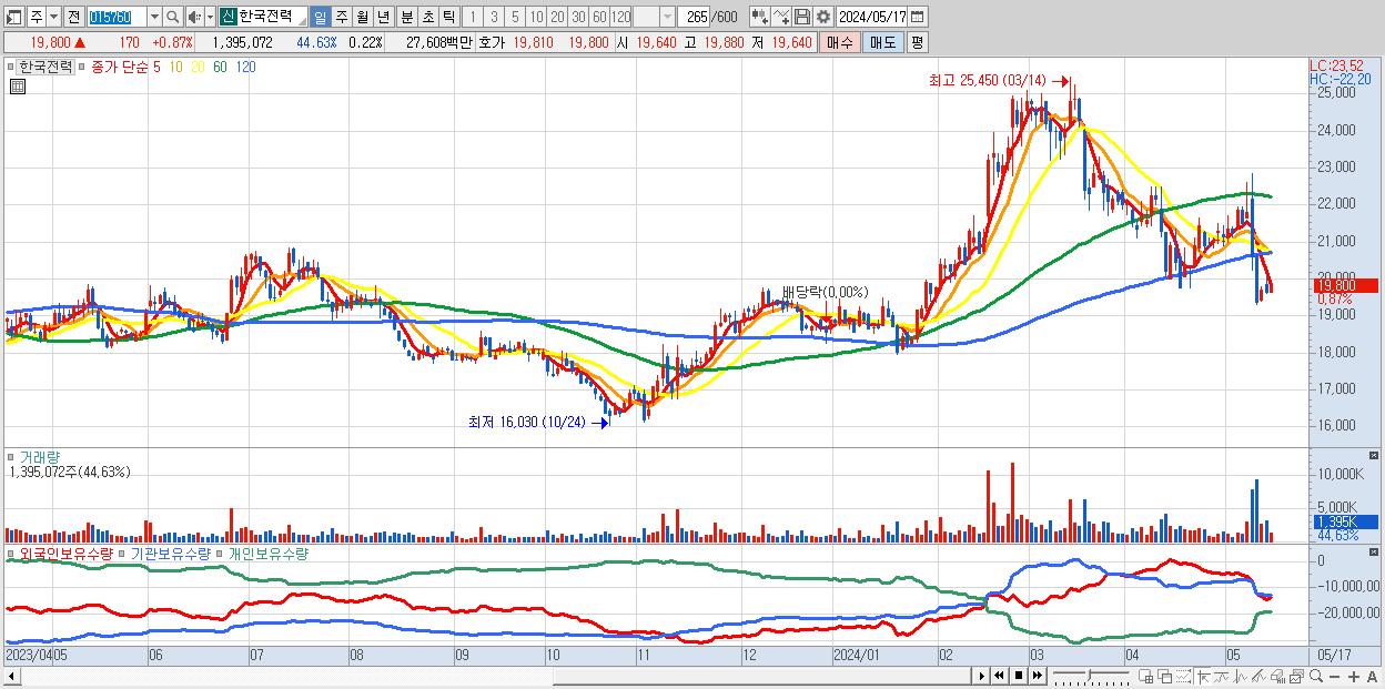 30.한국전력 19,800원 ▲ 0.87% (KOSPI, 015760)