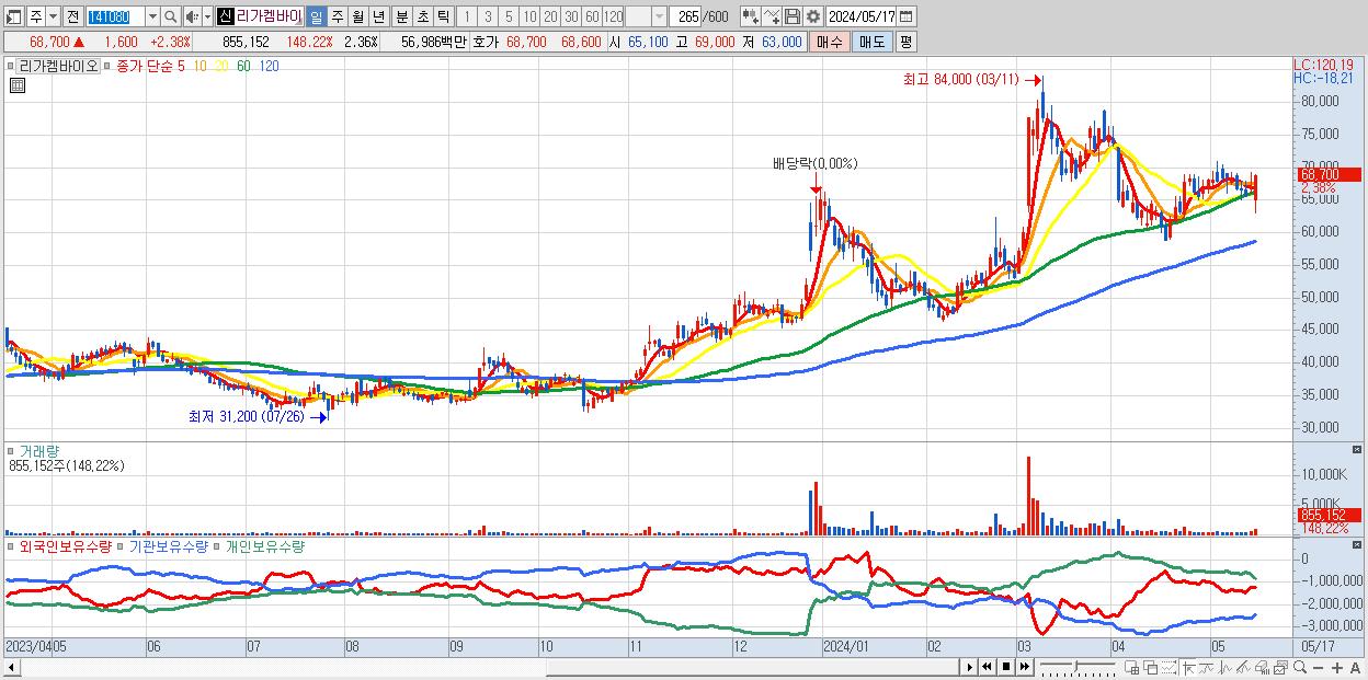 - 리가켐바이오 (68,700원 ▲ 2.38% , 시총: 24,846억, 외국인 순매수 거래금:37억)