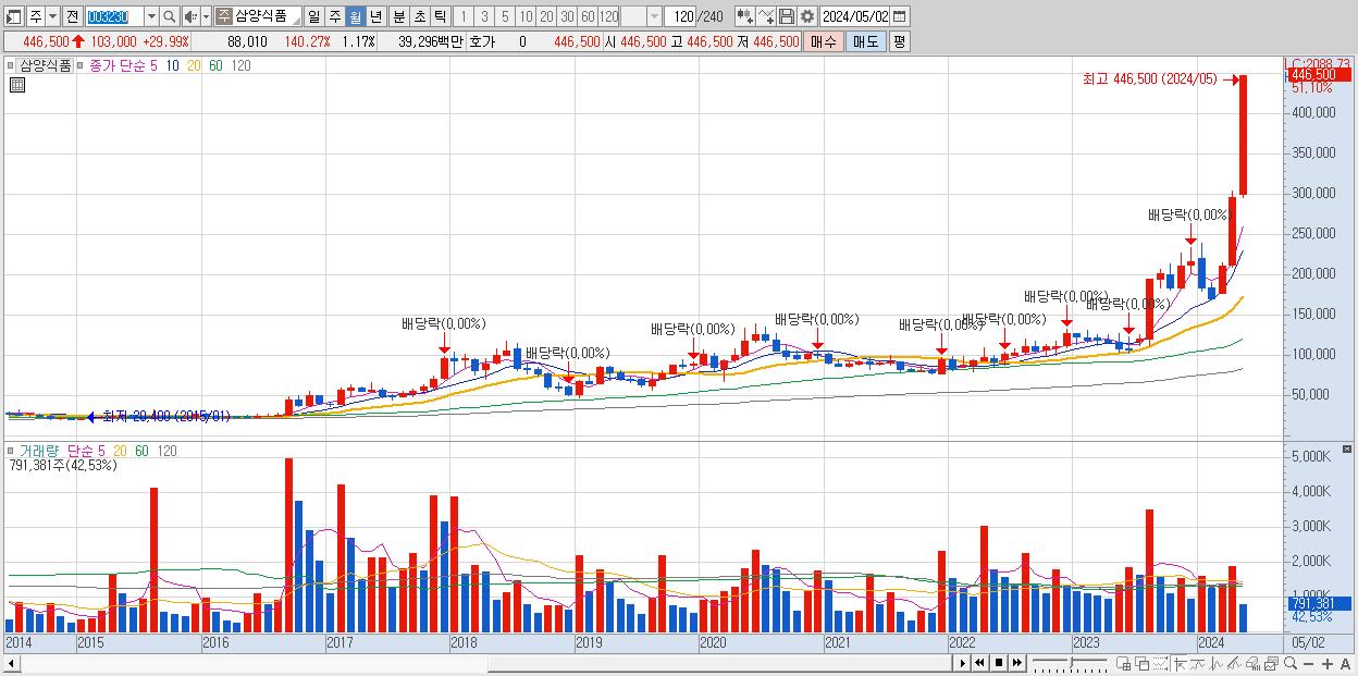 삼양식품 446,500원 ▲ 29.99% (KOSPI, 003230)