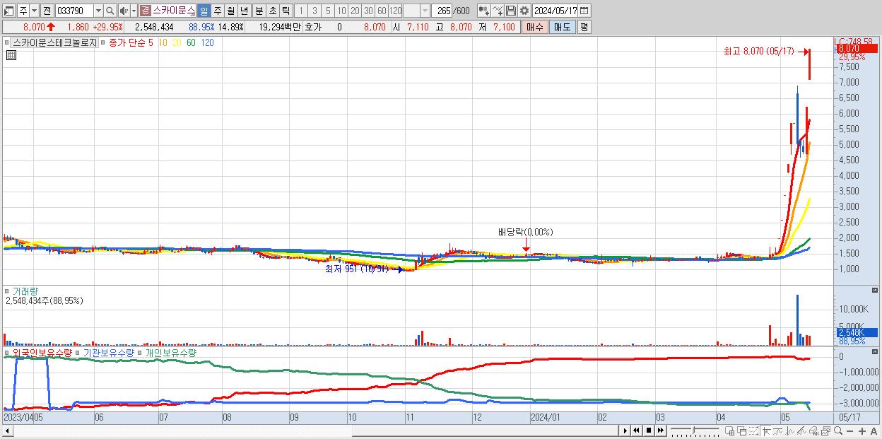 스카이문스테크놀로지 8,070원 ▲ 29.95% (KOSDAQ, 033790)