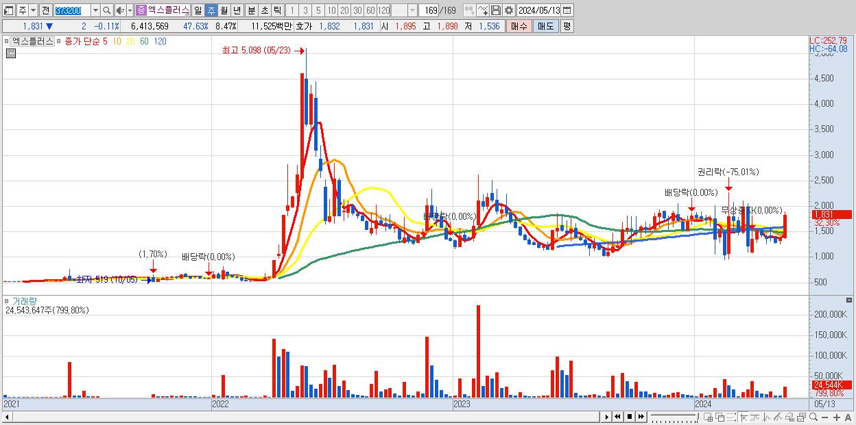 - 엑스플러스 (1,831원 ▲ 32.3% , 시총: 1,386억, 거래량: 24,543,647, 거래대금:420억)