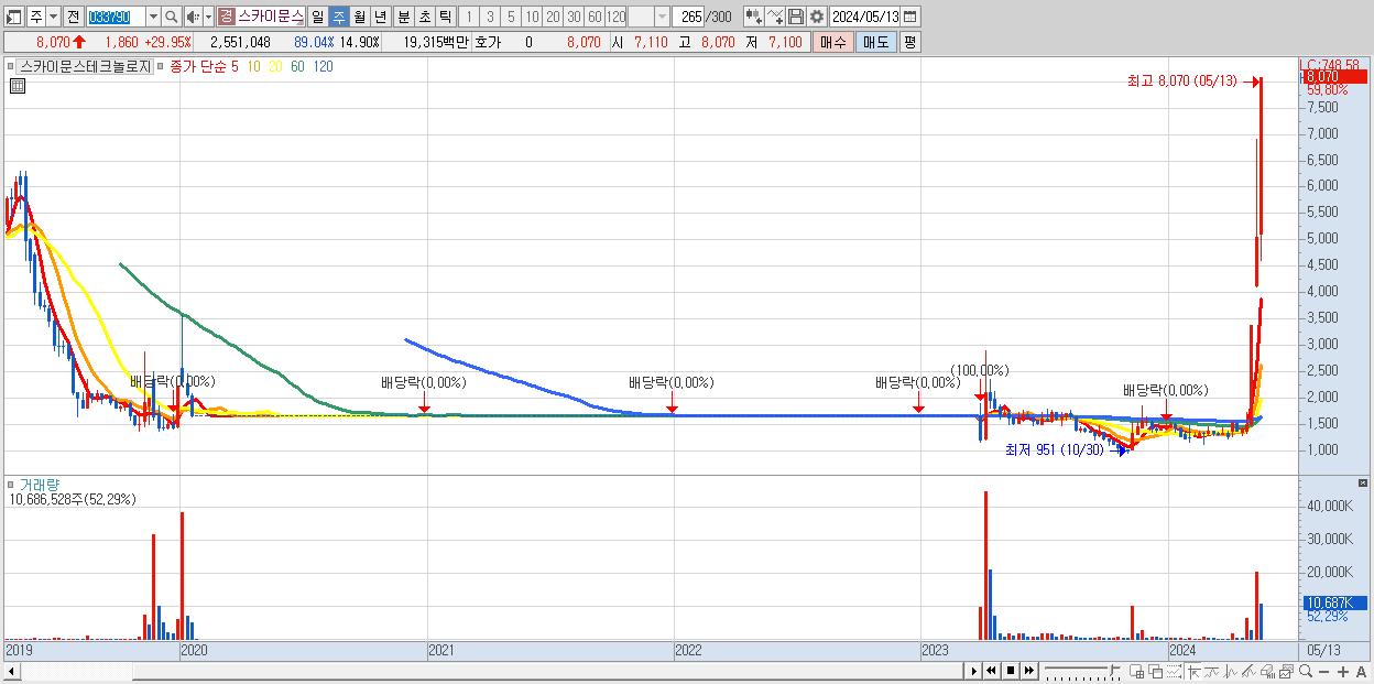 2.스카이문스테크놀로지 8,070원 ▲ 59.8% (KOSDAQ, 033790)