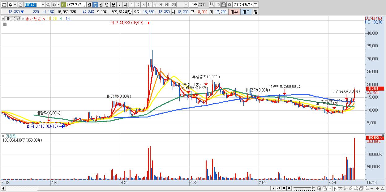 - 대한전선 (18,360원 ▲ 25.75% , 시총: 34,232억, 거래량: 166,664,430, 거래대금:29,606억)