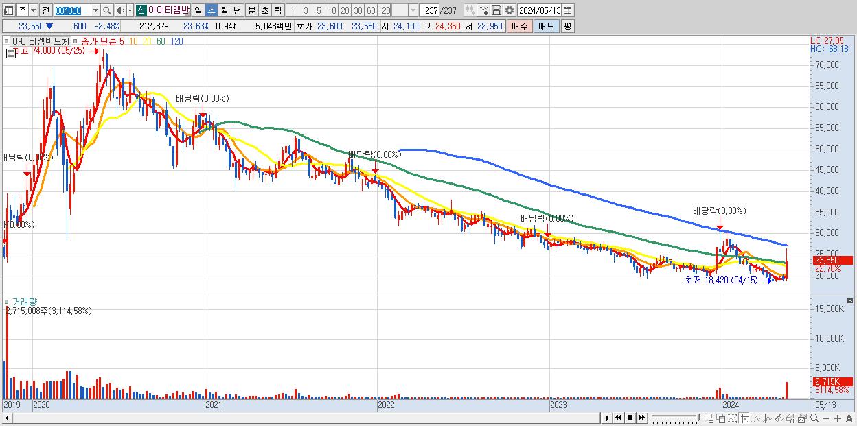 - 아이티엠반도체 (23,550원 ▲ 22.78% , 시총: 5,342억, 거래량: 2,715,008, 거래대금:655억)
