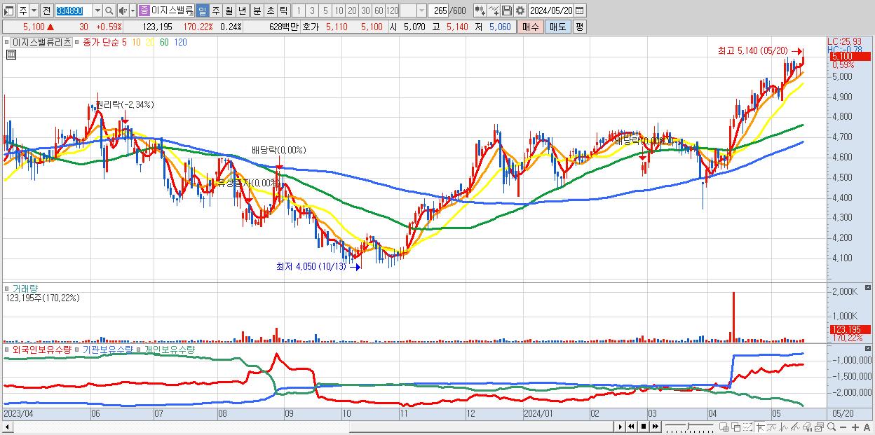 이지스밸류리츠 5,100원 ▲ 0.59% (KOSPI, 334890)