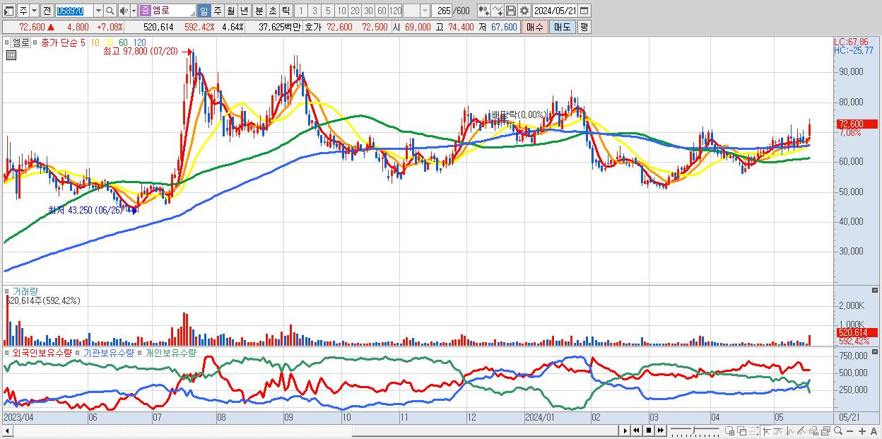 - 엠로 (72,600원 ▲ 7.08% , 시총: 8,140억, 외국인 순매수 거래금:39억)
