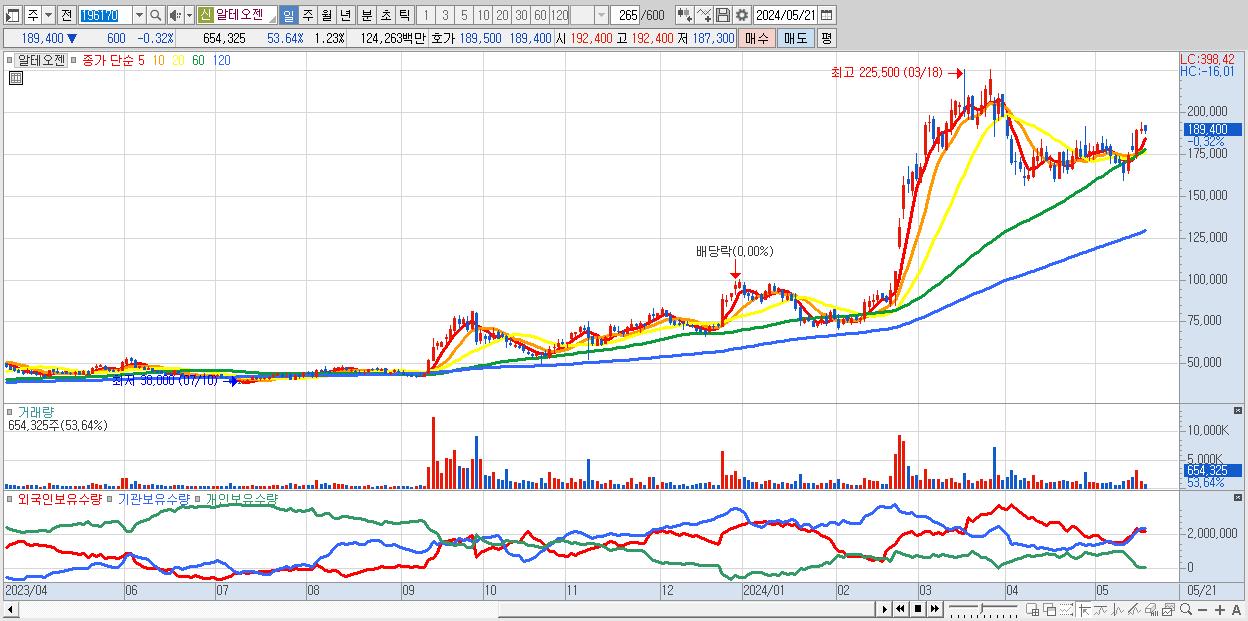 - 알테오젠 (189,400원 ▼ -0.32% , 시총: 100,404억, 외국인 순매수 거래금:42억)