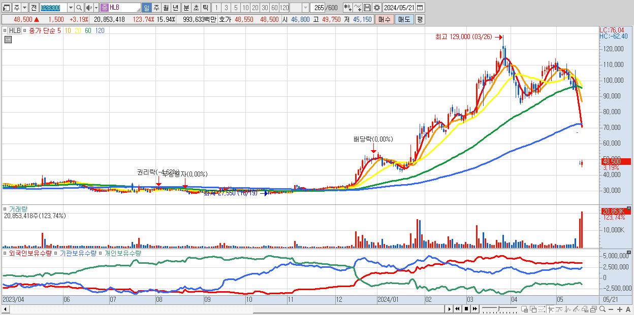 - HLB (48,500원 ▲ 3.19% , 시총: 63,460억, 외국인 순매수 거래금:53억)