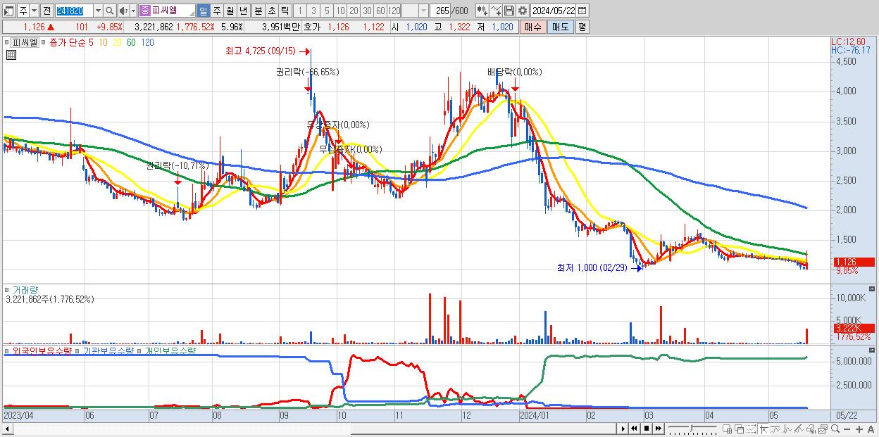 - 피씨엘 (1,126원 ▲ 9.85% , 시총: 608억, 거래량: 3,221,862, 거래대금:40억)