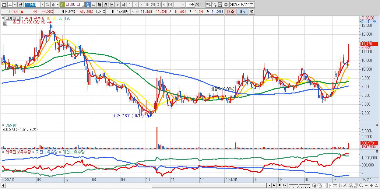 30.디케이티 11,430원 ▲ 9.38% (KOSDAQ, 290550)
