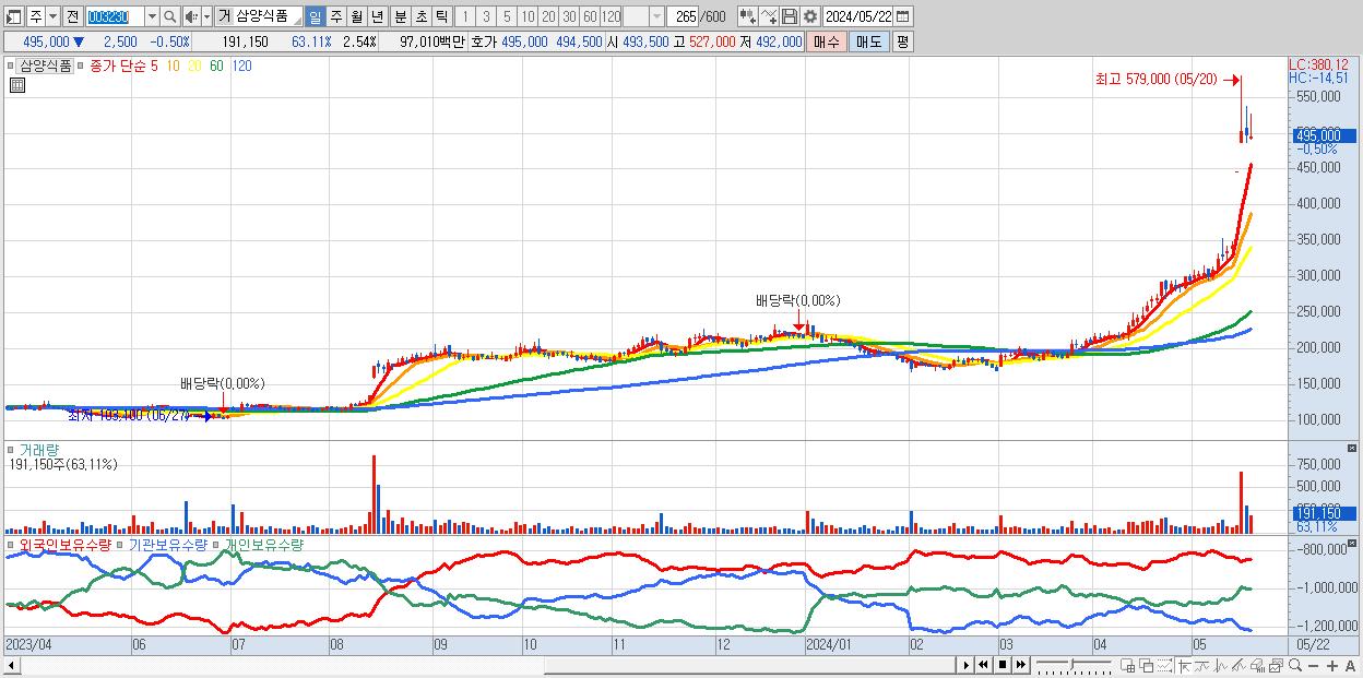 - 삼양식품 (495,000원 ▼ -0.5% , 시총: 37,288억, 외국인 순매수 거래금:49억)