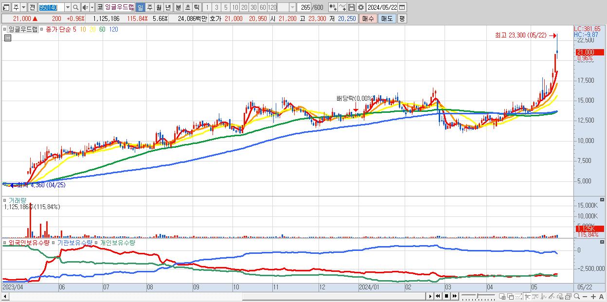 - 잉글우드랩 (21,000원 ▲ 0.96% , 시총: 4,172억, 외국인 순매수 거래금:46억)