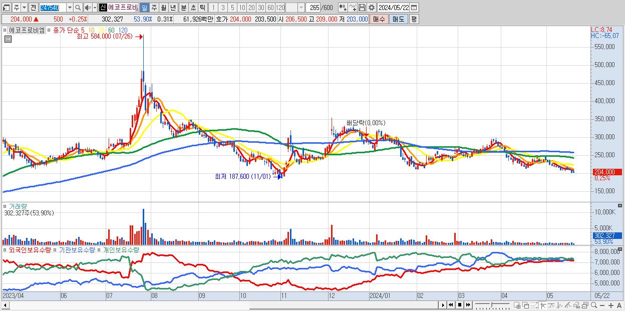 - 에코프로비엠 (204,000원 ▲ 0.25% , 시총: 199,515억, 외국인 순매수 거래금:89억)