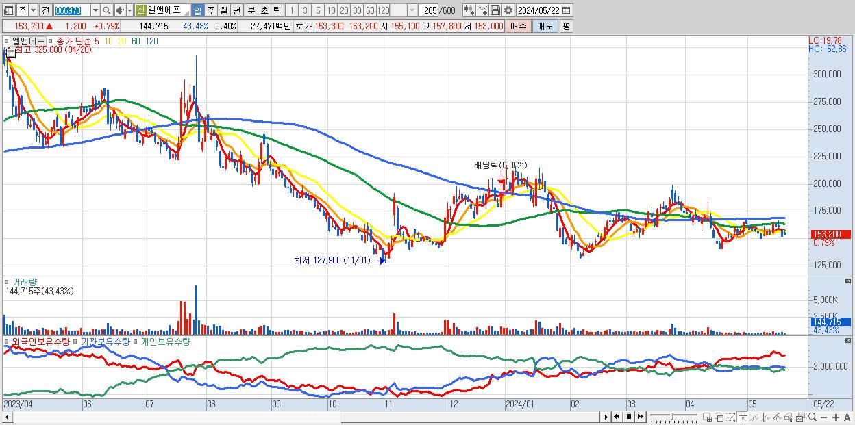 - 엘앤에프 (153,200원 ▲ 0.79% , 시총: 55,604억, 외국인 순매수 거래금:53억)