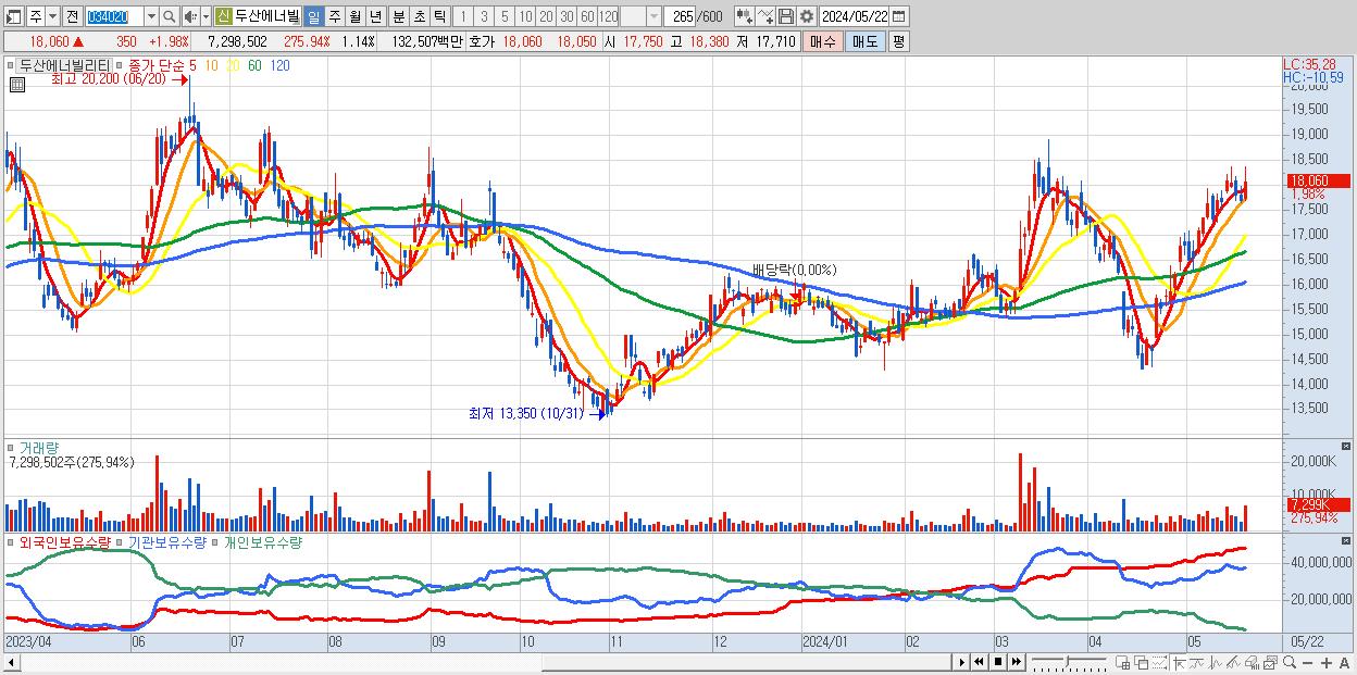 - 두산에너빌리티 (18,060원 ▲ 1.98% , 시총: 115,685억, 외국인 순매수 거래금:100억)